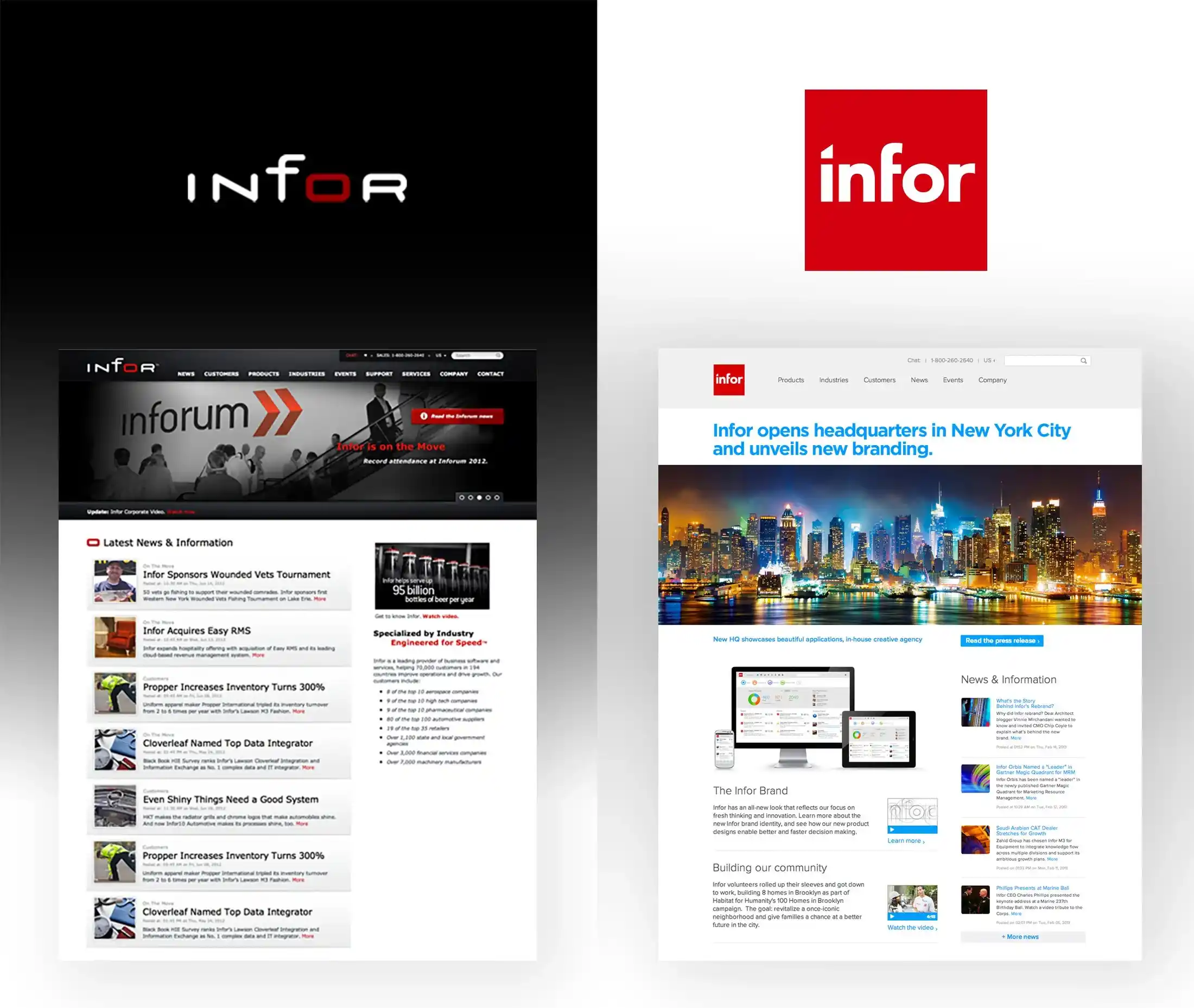 • Personally designed new brand identity, and drove the implementation across corporate websites, product UI, microsites, collateral, digital installations, signage, video, social media and all marketing initiatives.
